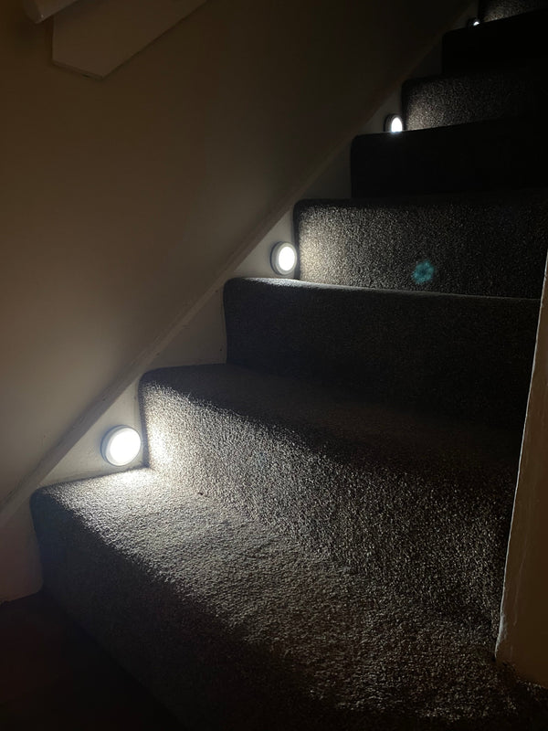 💡 100% wireless, portable, and easy to install. Ideal for cabinets, kitchen units, staircases, and dark corners.